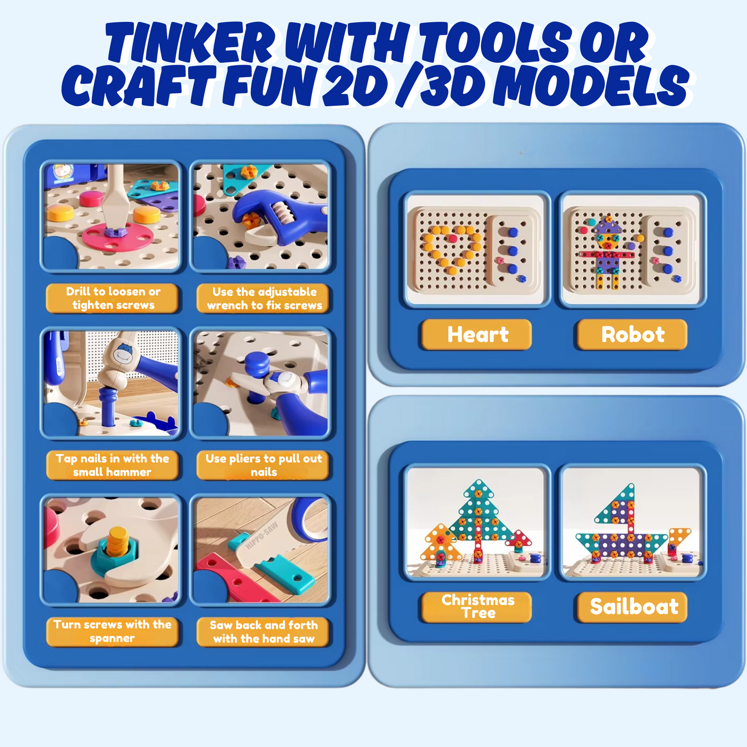 Kids can create flowers, windmills, planes, and more using the included parts, or role-play as little builders using the tools. Encourages creativity, critical thinking, and hands-on exploration!