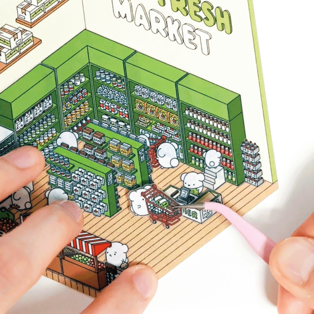 Let your creativity soar with Stick n’ Scene 3D DIY Scene Stickers! Whether you're a child or an adult, these adorable cartoon stickers make it easy to build your own charming scenes of supermarkets, coffee shops, bookstores, farms, restaurants, and so much more.