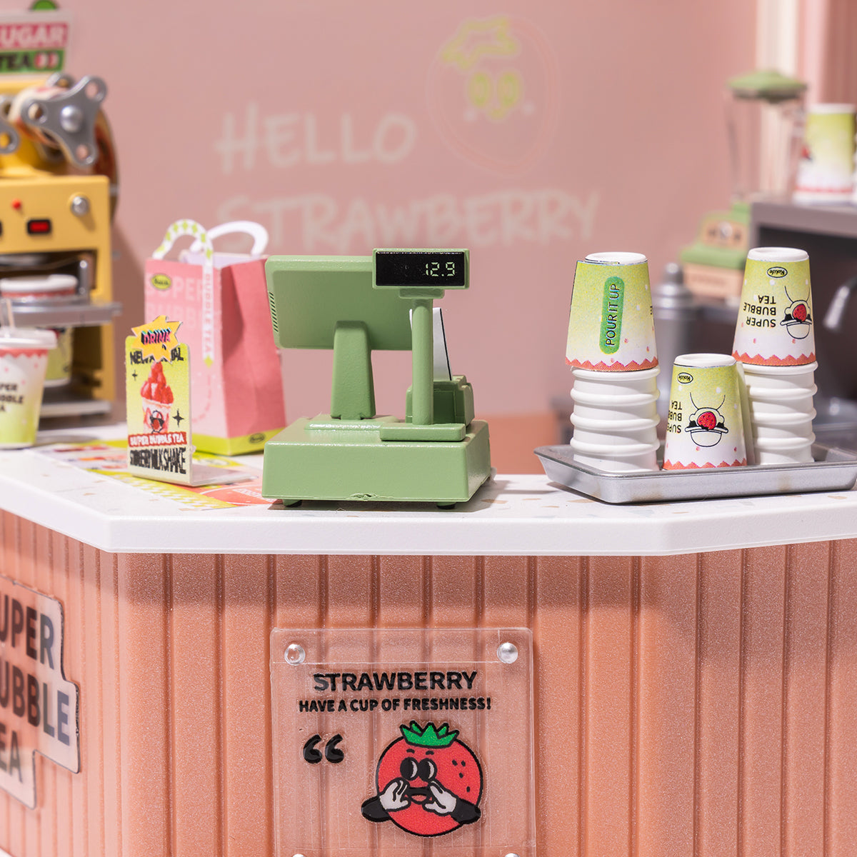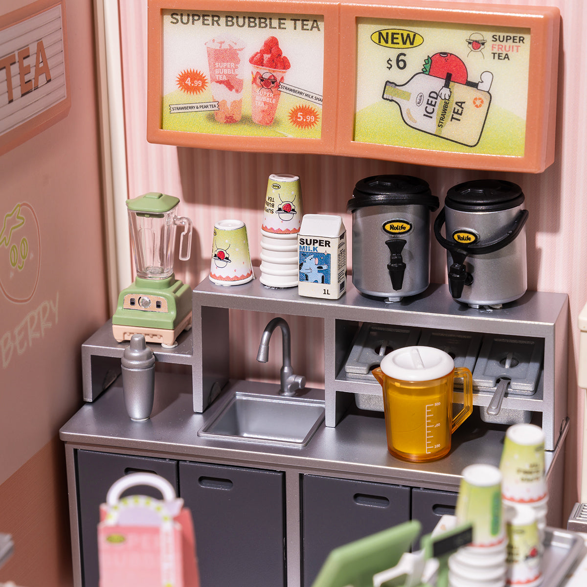 Immerse yourself in the delightful ambiance of a sweet bubble tea haven with this DIY kit. With colorful decor, every detail is meticulously crafted to capture the essence of a cheerful and inviting bubble tea shop.