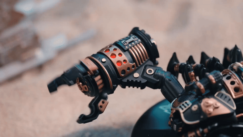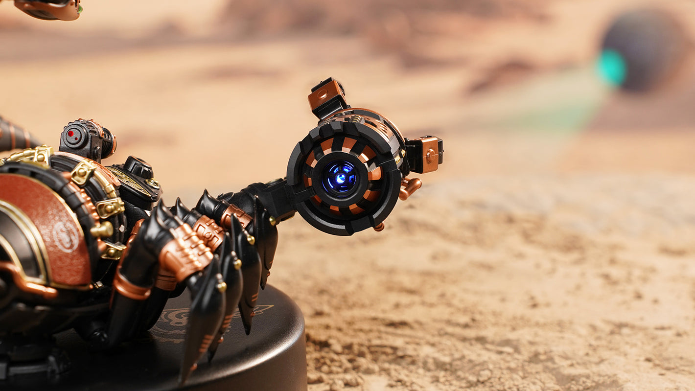 When the large triangular pincer emits a flashing red light, it indicates the commencement of its activation sequence. Once the red light transitions to a steady glow, signaling its readiness to unleash devastation upon its foes.