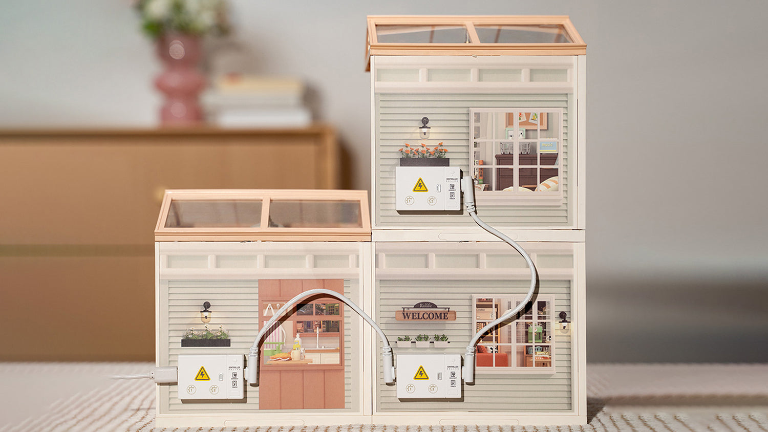 Horizontal & Vertical Stacking: The miniature houses are built with a unique "three boards" structure, equipped with connectors for horizontal stacking, vertical stacking, as well as various combinations like "L" and "Pin" types. This design ensures a solid and stable finished effect, allowing you to create your dream miniature world with ease.