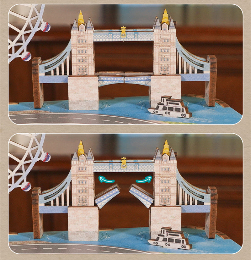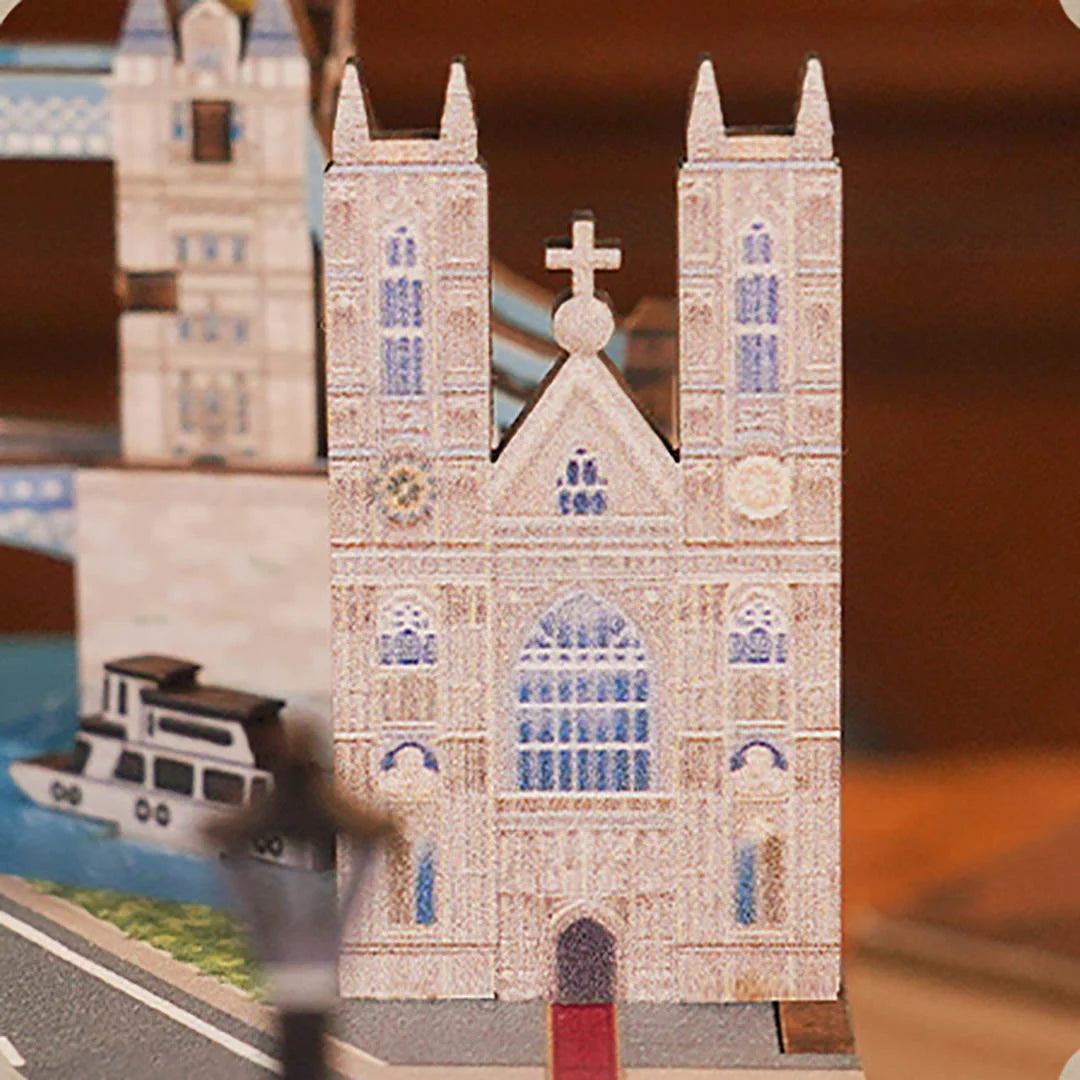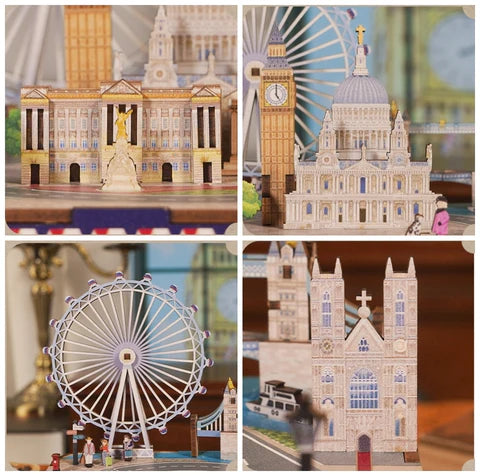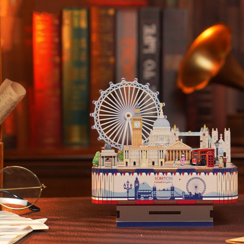 Embark on a journey through the streets of London in the iconic red bus with the London City DIY Music Box. This wooden puzzle music box invites you to build a detailed cityscape while enjoying the song "London Bridge". Each piece you assemble brings to life the romance and elegance of England’s capital.