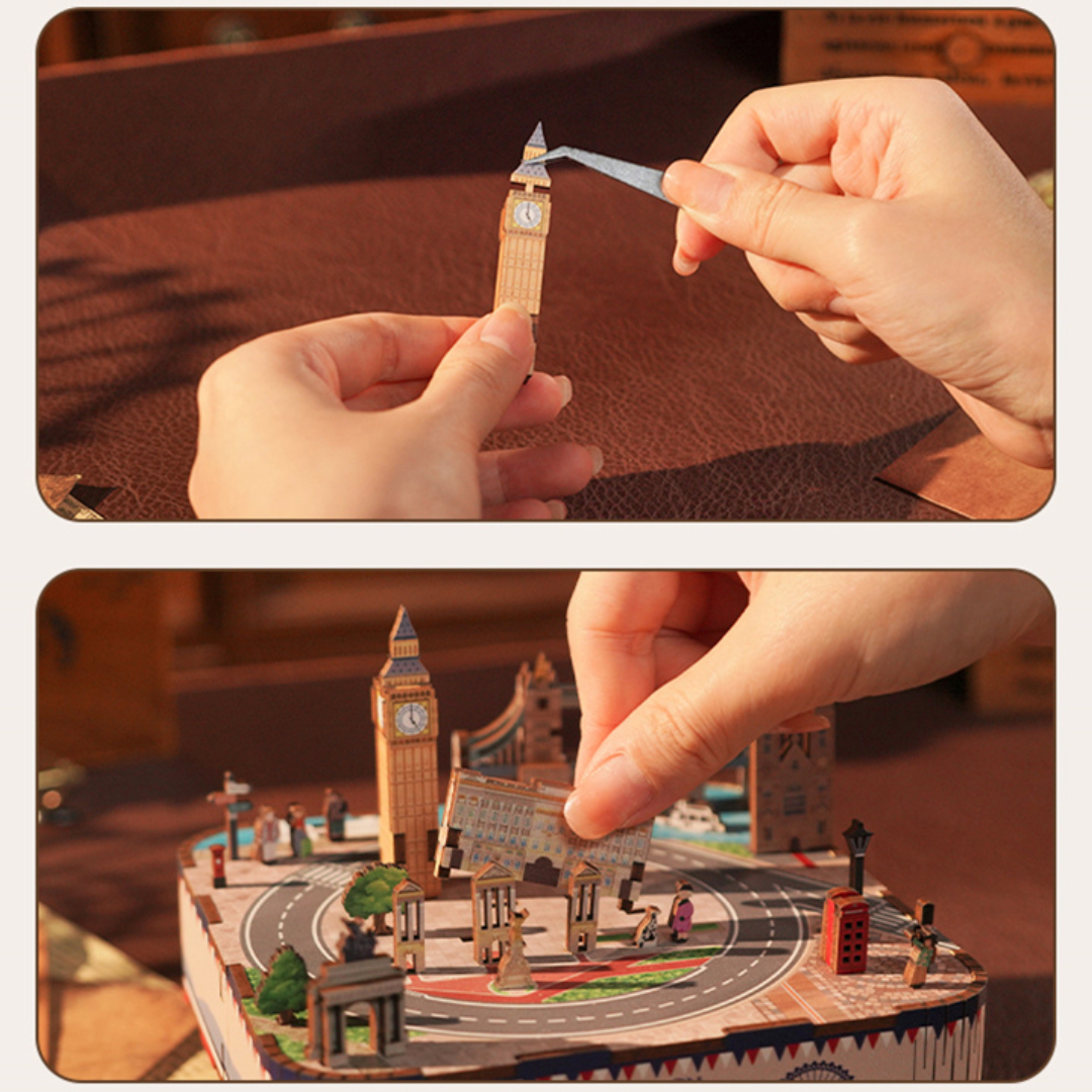 The beauty of the London City DIY Music Box lies in its meticulous attention to detail. The cobblestone streets and quaint buildings evoke the atmosphere of London’s neighborhoods, adding depth and realism.