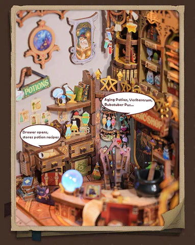 The window view changes along with the sound effects. The dynamic visual effect allows you to immerse yourself in it, feel the atmosphere of being in the magic shop.
