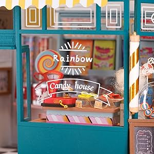 This candy house has a wide variety of delicious sweets, gums and even candy machine. All kinds of goods can be picked up and arranged at will.