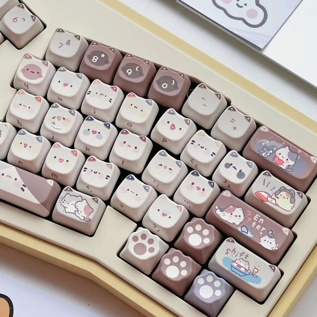 The SnowMew keycaps are as cute as a kitten, featuring cat-shaped buttons and sweet little faces printed in soft, calming mocha and white hues. If you love a more mellow look but can’t resist a touch of feline fun, these keycaps will have you purring in no time! 🐾